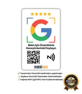 ParsVizit tarafından geliştirilen yenilikçi bir hizmetle karşınızdayız! İşletmenize ait Google İşletme Sayfasına hızlı ve kolay erişim sağlamak için özel olarak tasarlanmış Dijital NFC & QR Özellikli Google Yorum Kartımızı sunmaktan gurur duyuyoruz.